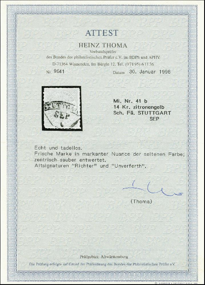| Prüfer: | Thoma, Heinz (BPP (Bund Philatelistischer Prüfer)) |