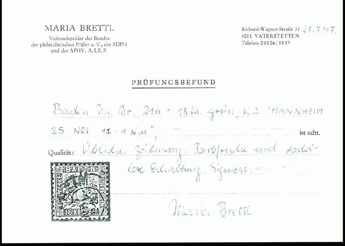 | Prüfer: | Brettl, Maria (BPP (Bund Philatelistischer Prüfer)) |