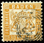 | Zusatzinformationen und Suchstichworte: | Dr. Reinhard Fischer 188. Auktion 1. - 3. September 2022 Los 1365 Altdeutschland Baden 30 Kreuzer dunkelgelblichorange, farbfrisches und vollzähniges Kabinettstück, entwertet mit Fünfringnummernstempel "87" - Mannheim, Fotoattest Stegmüller BPP: "tadellose Erhaltung, nicht repariert.", Mi. 3.200.- Zuschlag 1.000,00 EUR |