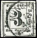 | Zusatzinformationen und Suchstichworte: | Dr. Reinhard Fischer 188. Auktion 1. - 3. September 2022 Los 1502 Altdeutschland Bayern 3 Kr. geschnitten, zentrisch gestempelt K1 "MÜNCHEN 17. AUG.", unten lupen-, sonst voll- bis breitrandig, links mit kompletter Schnittlinie, tadelloses Kabinettstück, neuer Fotobefund Sem BPP (2022): "Marke und Stempel sind echt. [...] einwandfrei erhalten.", Mi. 400.- Zuschlag 80,00 EUR |