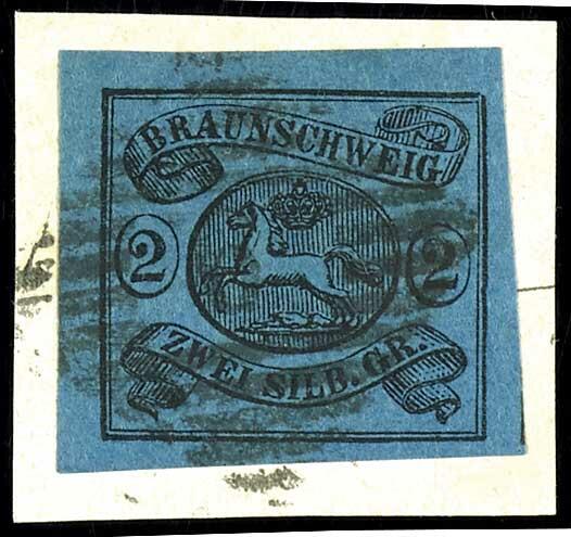 | Zusatzinformationen und Suchstichworte: | Dr. Reinhard Fischer 188. Auktion 1. - 3. September 2022 Los 1530 Altdeutschland Braunschweig 2 Silbergroschen schwarz auf blau, vollrandiges und farbfrisches Kabinettstück, entwerte mit Nummernstempel kleine "9." (Braunschweig) auf Briefstück, tadellose Erhaltung, Fotobefund Lange BPP: "echt und einwandfrei" Ausruf 25,00 EUR |