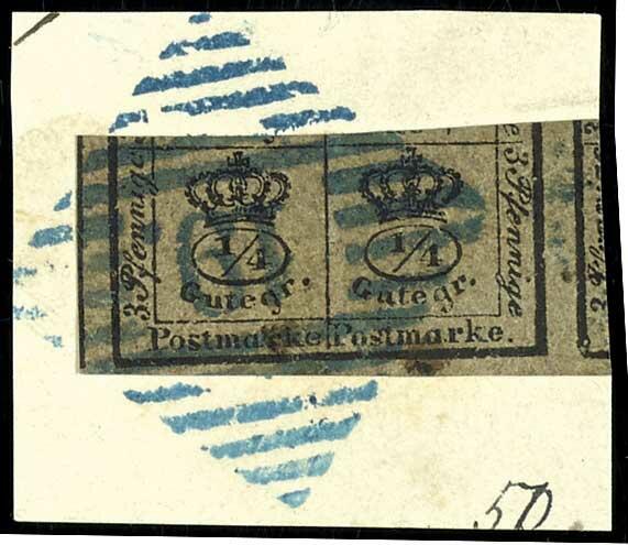 | Zusatzinformationen und Suchstichworte: | Dr. Reinhard Fischer 188. Auktion 1. - 3. September 2022 Los 1536 Altdeutschland Braunschweig 2/4 Groschen, schwarz auf grobem Papier, entwertet mit blauem Nummernstempel "19" (Harzburg) auf Briefstück, Fotobefund Lange BPP: "einwandfrei" Ausruf 35,00 EUR |