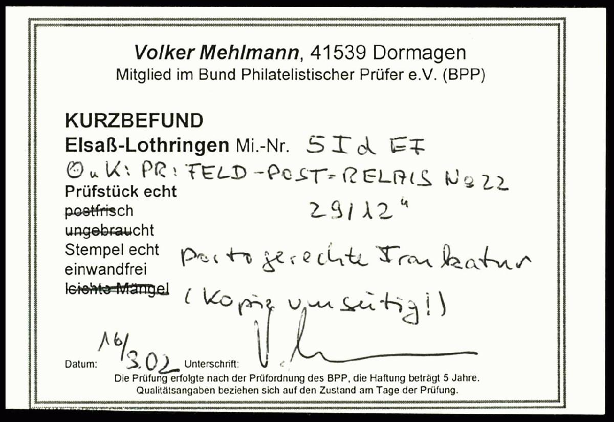 | Prüfgebiet: | Norddeutscher Postbezirk 1870 - 1871 Elsass-Lothringen |