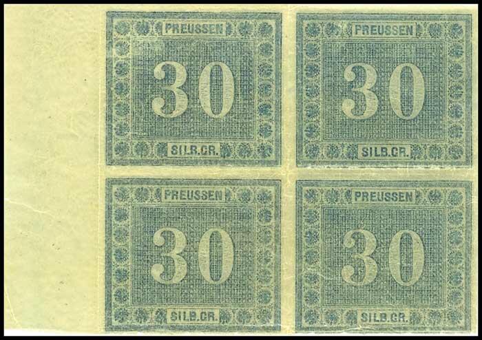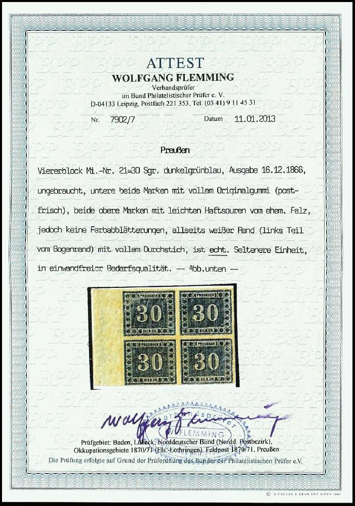 | Zusatzinformationen und Suchstichworte: | Dr. Reinhard Fischer 188. Auktion 1. - 3. September 2022 Los 1713 Altdeutschland Preussen 30 Sgr. dunkelgrünblau, Viererblock, postfrisch/ungebrauchtes (je zwei Werte) Kabinettstück vom linken Bogenrand, Fotoattest Flemming BPP: "seltene Einheit in einwandfreier Bedarfsqualität.", ex Sammlung Höffen Ausruf 350,00 EUR |