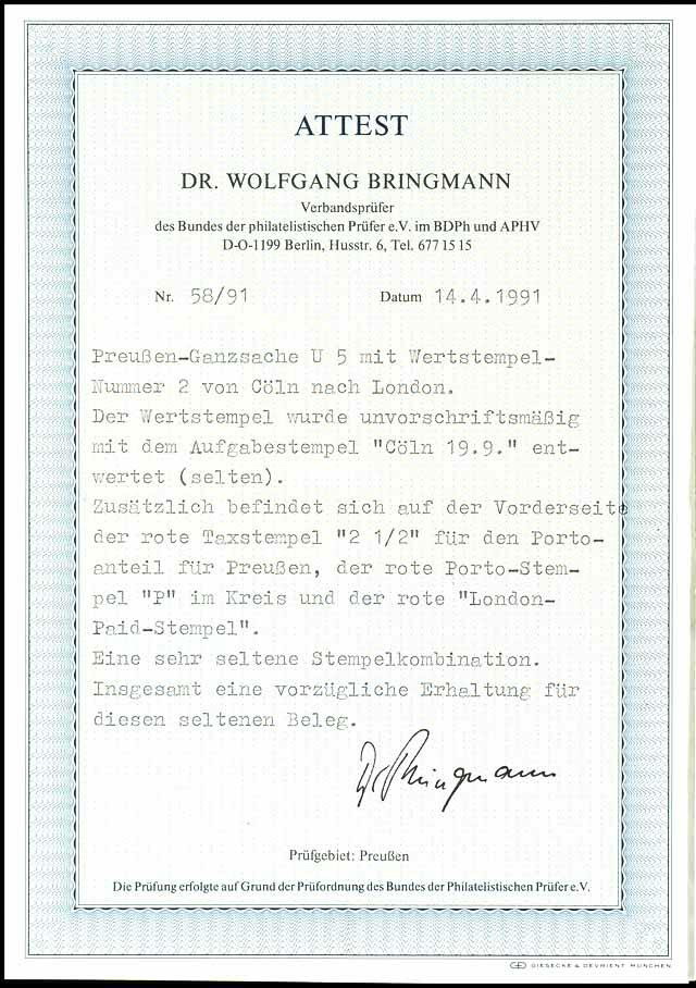 | Prüfgebiet: | Altdeutschland Preussen Ganzsachen |