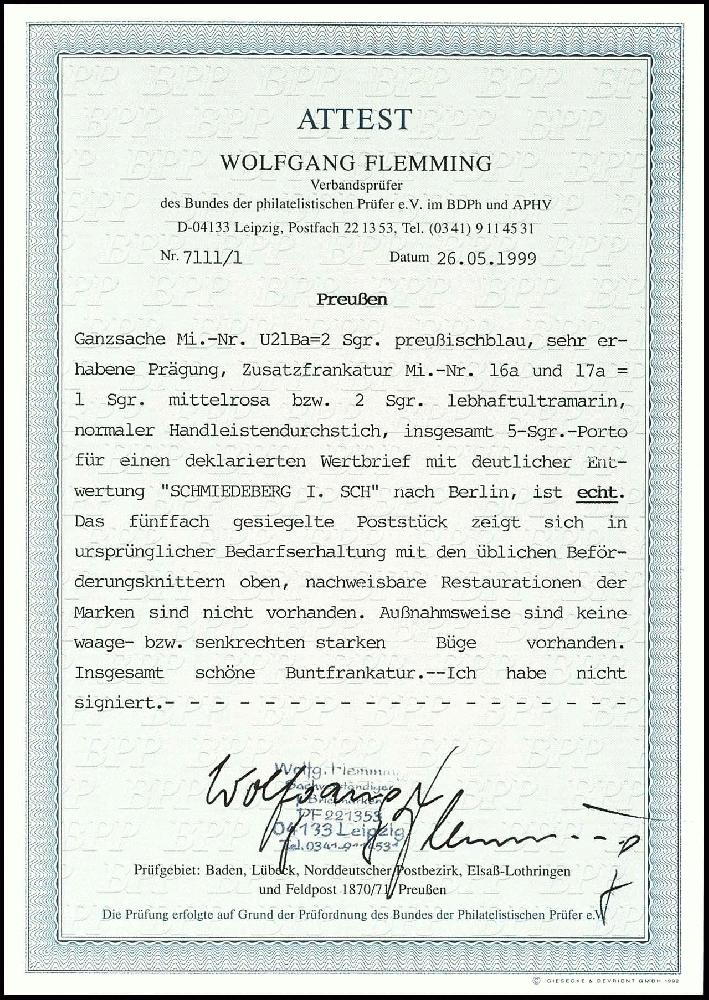 | Prüfgebiet: | Altdeutschland Preussen Ganzsachen |