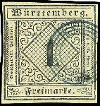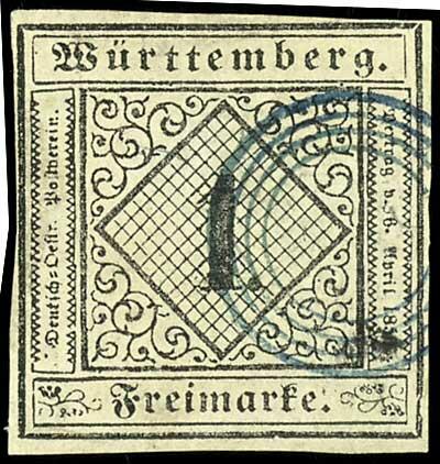 | Zusatzinformationen und Suchstichworte: | Dr. Reinhard Fischer 188. Auktion 1. - 3. September 2022 Los 1377 Altdeutschland Württemberg 1 Kreuzer schwarz auf hellsämisch, Type I, entwertet mit blauem Vierringstempel von Tübingen (Württ. Hamburg II/1 Nr. 7), Marke schmal- bis vollrandig im Schnitt, rückseitig geringfügige Papierausbesserungen, Entwertungen mit diesem Versuchsstempel fanden für ca. 4 Wochen bei Markeneinführung in Tübingen statt - er kommt auf 1 Kr. Marken mit Abstand am seltensten vor, Fotoattest Thomas BPP Zuschlag 200,00 EUR |