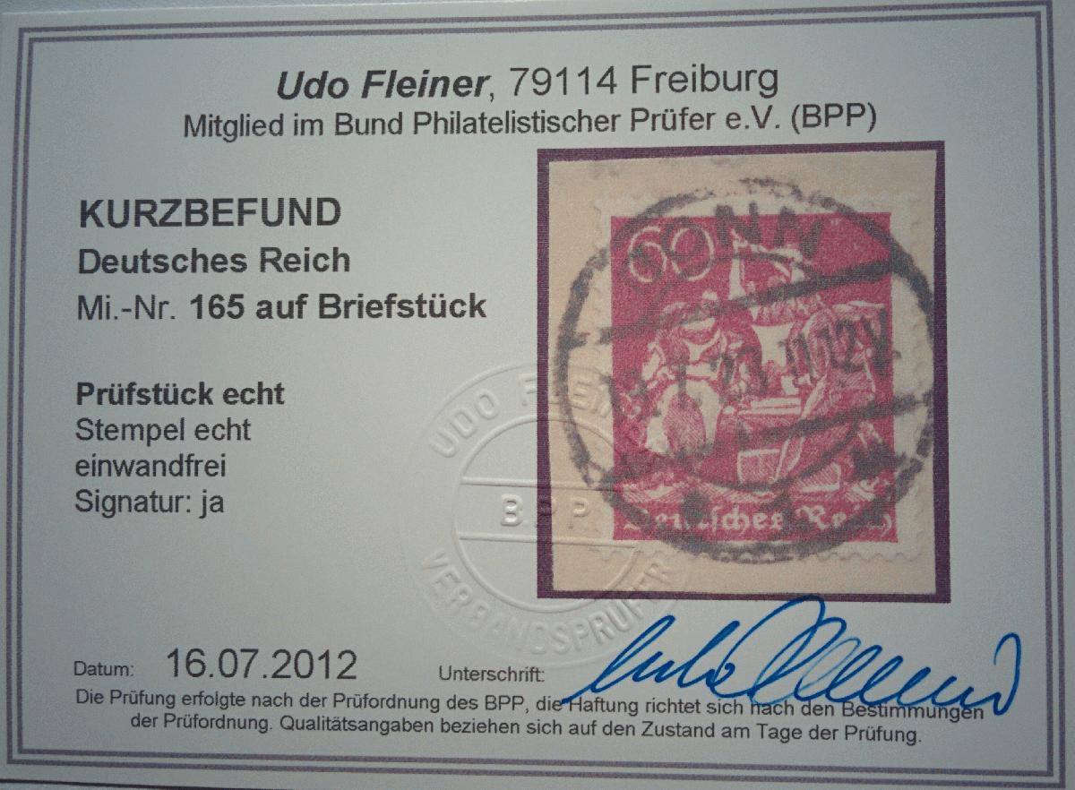 | Prüfer: | Fleiner, Udo (BPP (Bund Philatelistischer Prüfer)) |