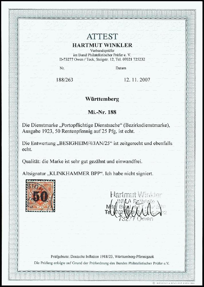 | Zusatzinformationen und Suchstichworte: | Dr. Reinhard Fischer 188. Auktion 1. - 3. September 2022 Los 1448 Altdeutschland Württemberg 3 auf 25 Pfg bis 50 auf 50 Pfg Freimarken, kompletter Satz mit fünf Werten, zeitgerecht gestempelt, gepr. bzw. Höchstwert Fotoattest Winkler BPP: "echt und einwandfrei" Ausruf 250,00 EUR |