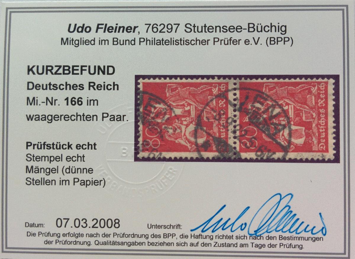 | Prüfer: | Fleiner, Udo (BPP (Bund Philatelistischer Prüfer)) |