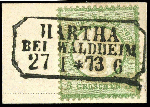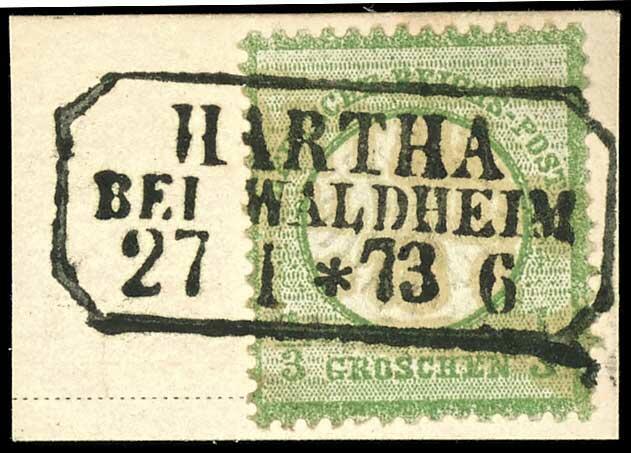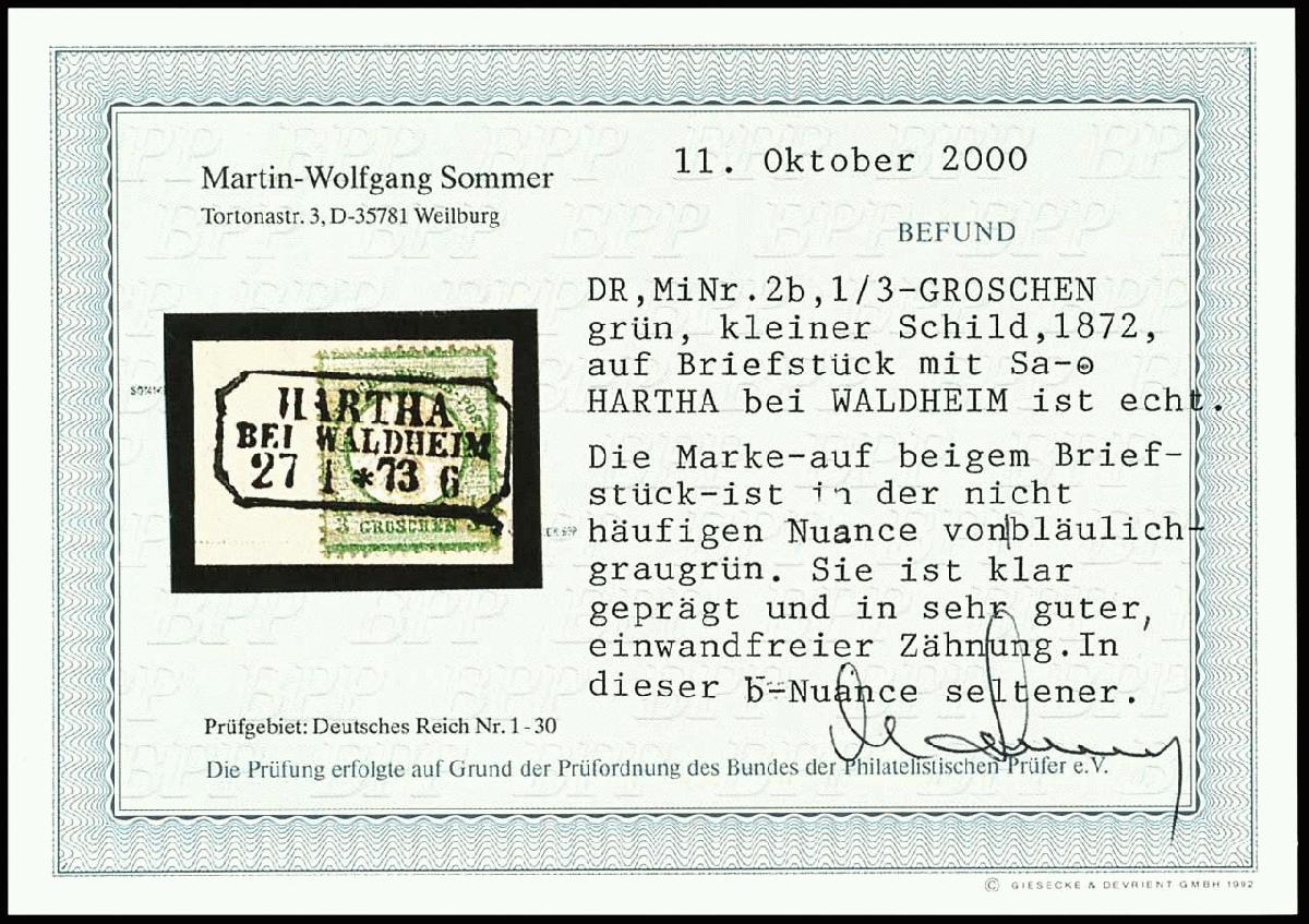 | Zusatzinformationen und Suchstichworte: | Dr. Reinhard Fischer 188. Auktion 1. - 3. September 2022 Los 1798 Deutsches Reich, 1872 Kleiner Brustschild 1/3 Gr. in seltener Nuance bläulichgrün mit Sachsen-Ra3 "HARTHA BEI WALDHEIM 27.1.73" auf Briefstück, Kabinett, Fotobefund Sommer BPP Zuschlag 50,00 EUR |