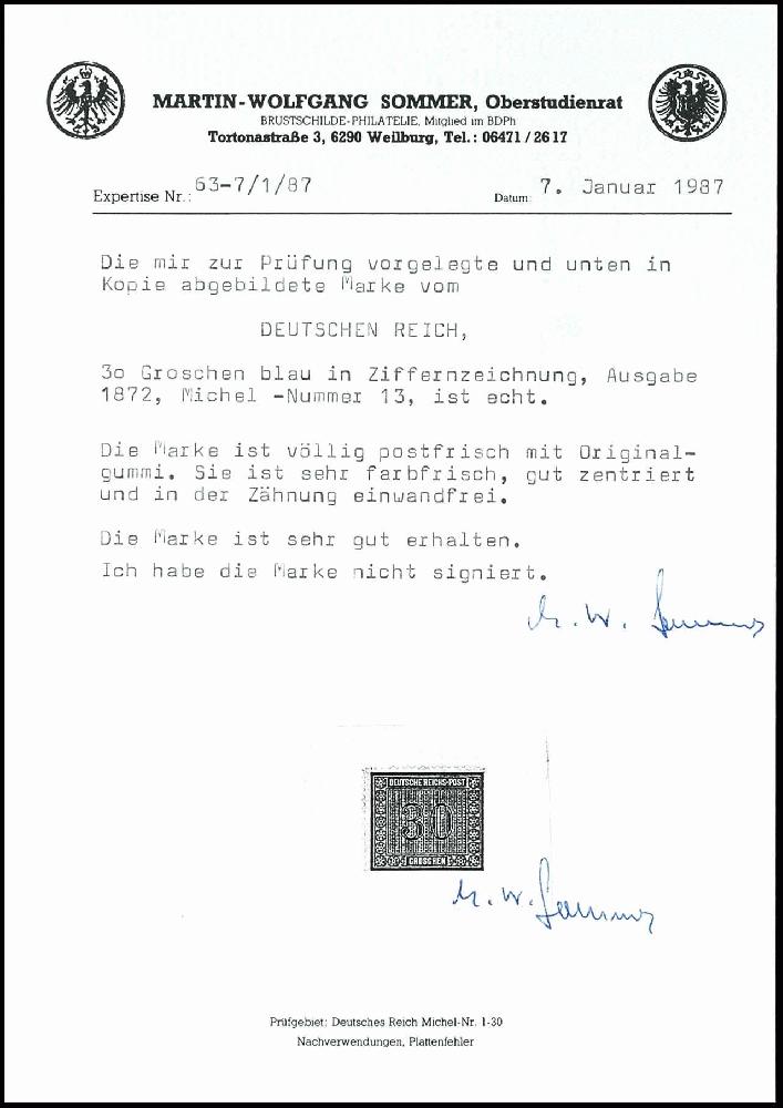 | Prüfgebiet: | Deutsches Reich 1871 - 1918 (Mi-Nr. 1 - 106) |