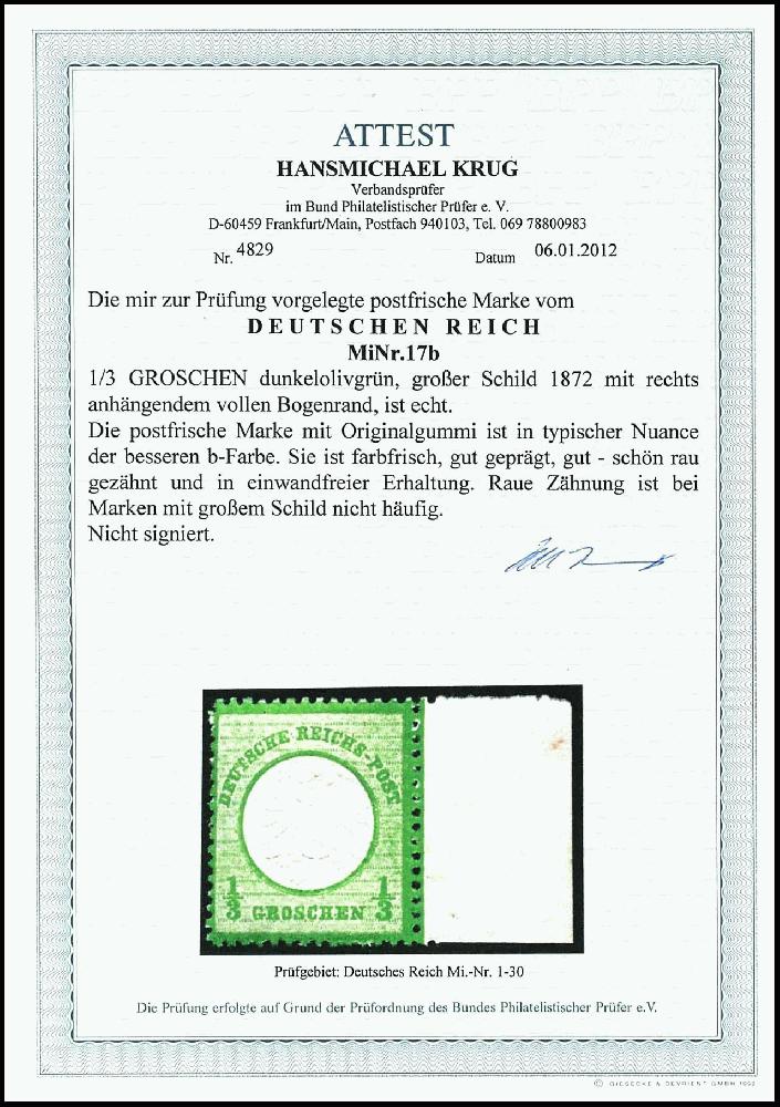 | Prüfer: | Krug, Hansmichael (BPP (Bund Philatelistischer Prüfer)) |