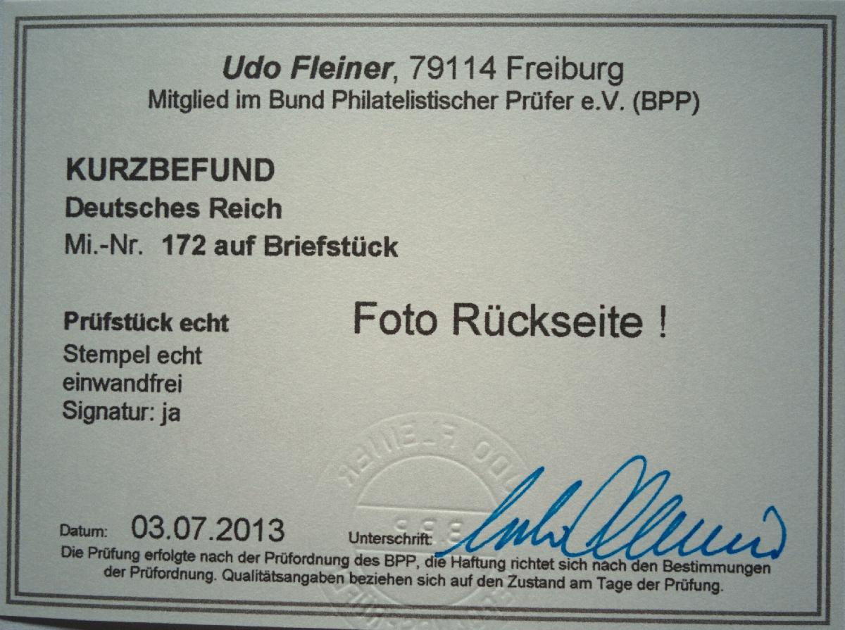 | Prüfer: | Fleiner, Udo (BPP (Bund Philatelistischer Prüfer)) |