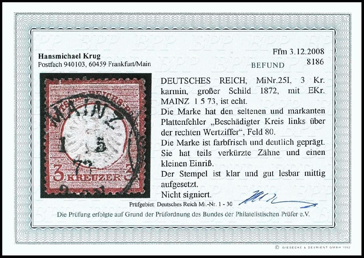 | Prüfgebiet: | Deutsches Reich 1871 - 1918 (Mi-Nr. 1 - 106) |