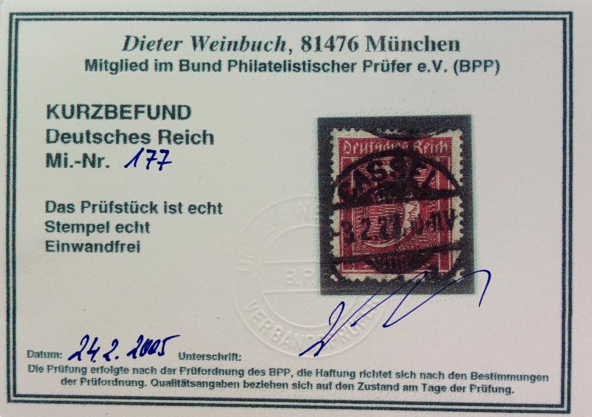 | Prüfgebiet: | Deutsches Reich 1919 - 1923 (Mi-Nr. 107 - 343) |