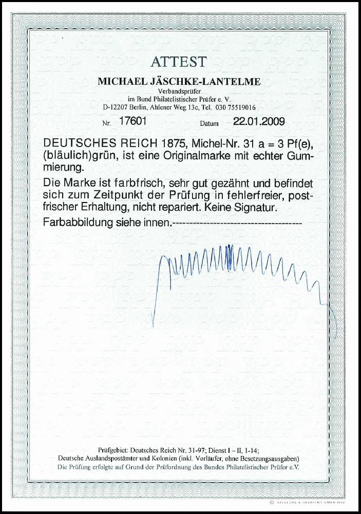 | Prüfer: | Jäschke-Lantelme, Michael (BPP (Bund Philatelistischer Prüfer)) |