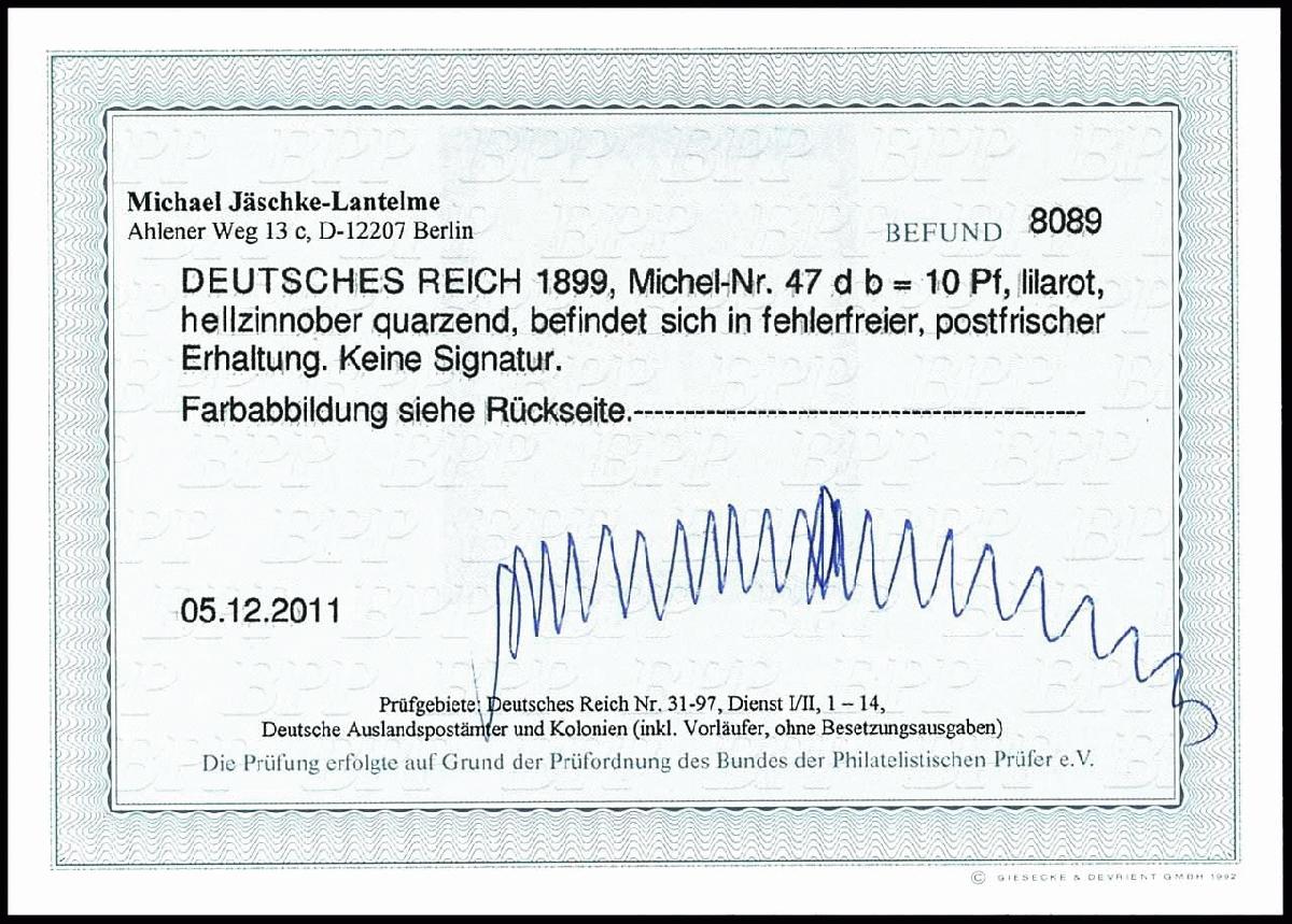 | Prüfgebiet: | Deutsches Reich 1871 - 1918 (Mi-Nr. 1 - 106) |