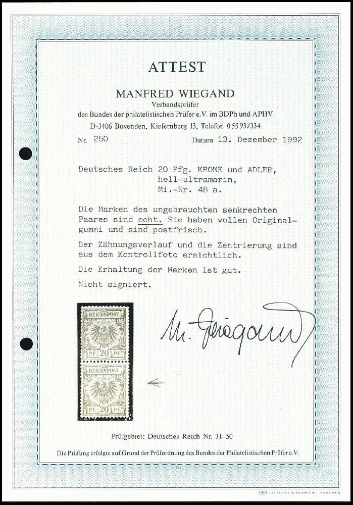 | Prüfer: | Wiegand, Manfred (BPP (Bund Philatelistischer Prüfer)) |