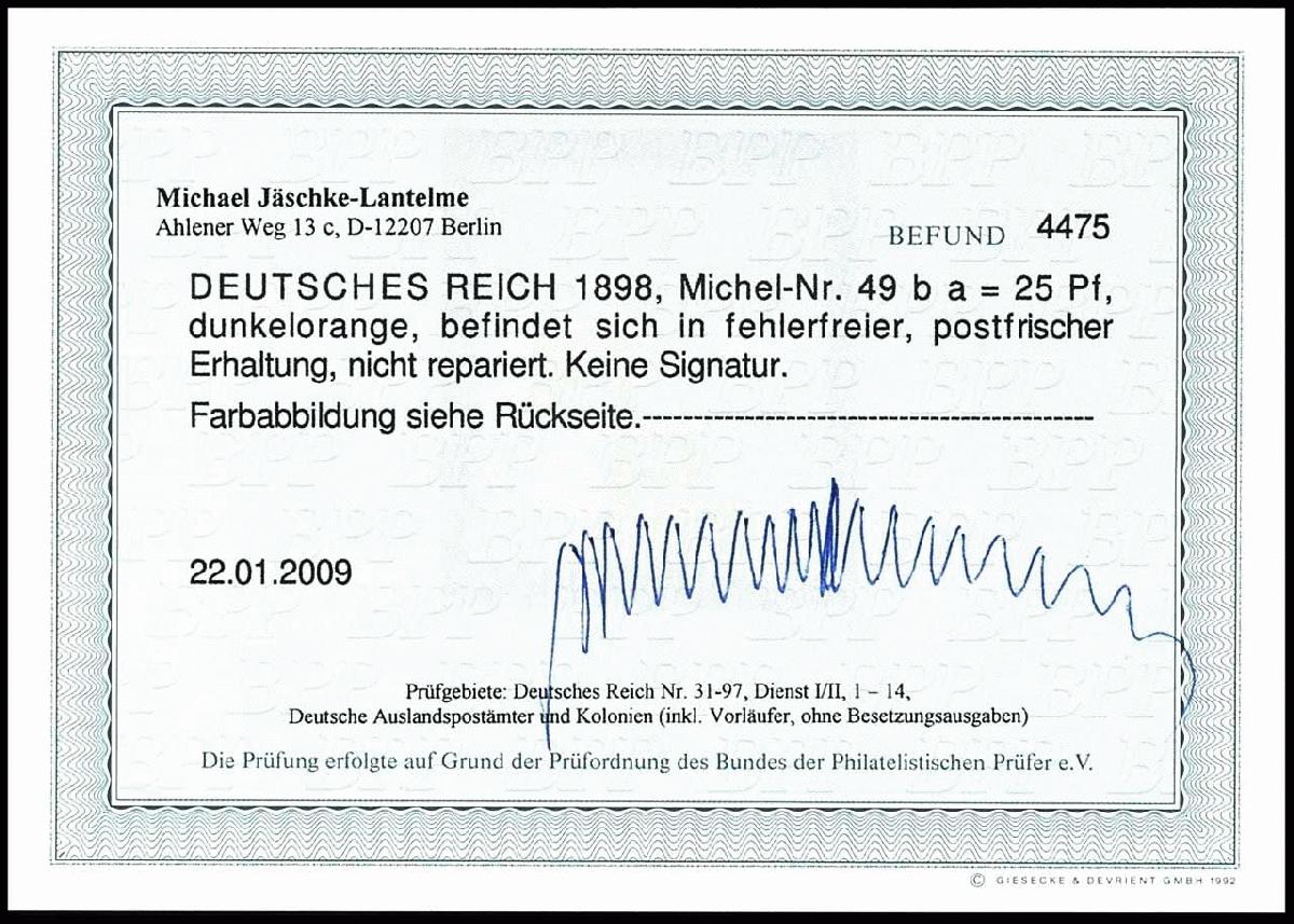 | Prüfgebiet: | Deutsches Reich 1871 - 1918 (Mi-Nr. 1 - 106) |