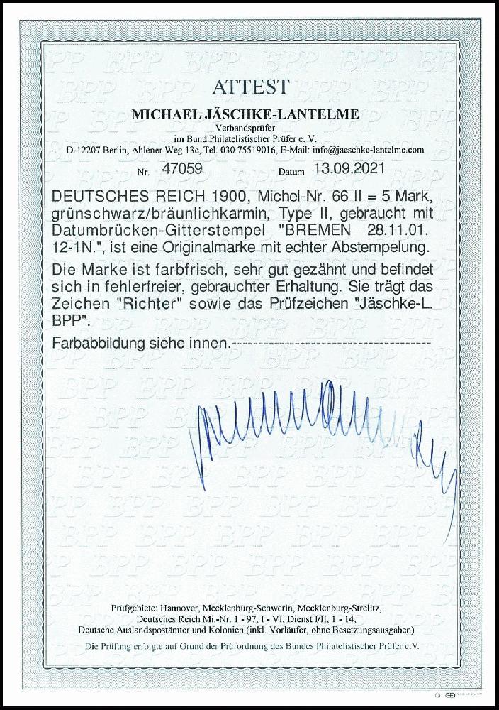 | Prüfgebiet: | Deutsches Reich 1871 - 1918 (Mi-Nr. 1 - 106) |