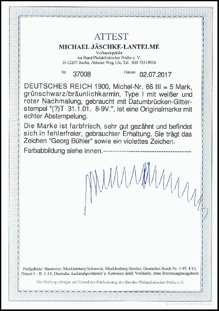 | Prüfgebiet: | Deutsches Reich 1871 - 1918 (Mi-Nr. 1 - 106) |
