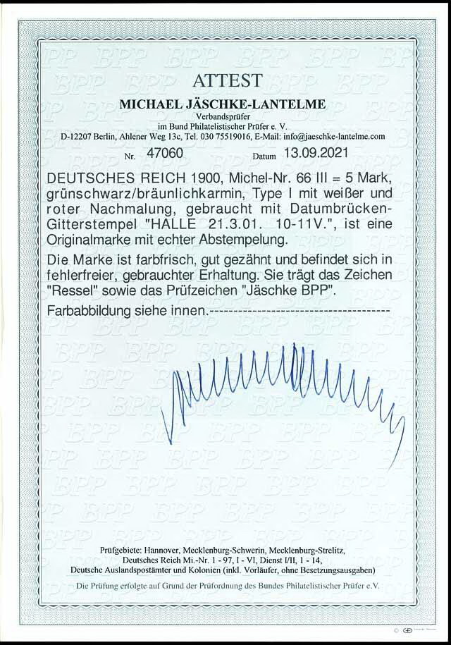 | Prüfer: | Jäschke-Lantelme, Michael (BPP (Bund Philatelistischer Prüfer)) |