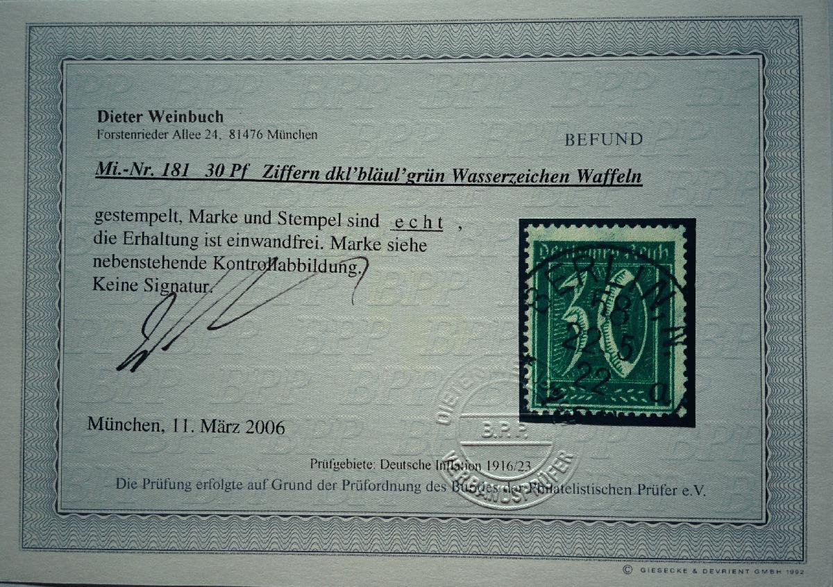 | Prüfgebiet: | Deutsches Reich 1919 - 1923 (Mi-Nr. 107 - 343) |