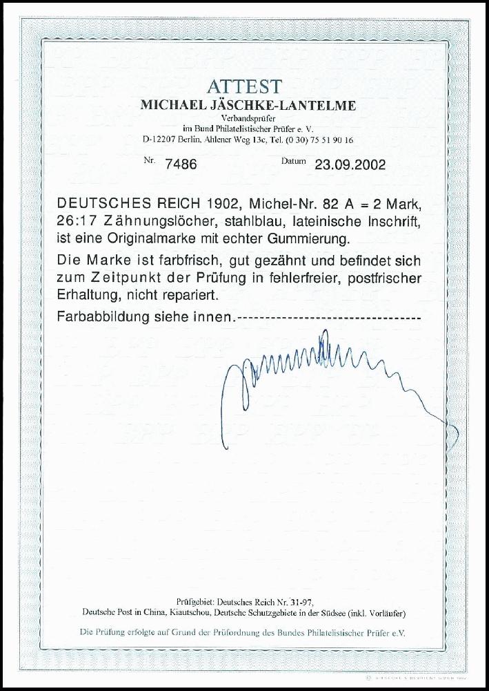 | Prüfgebiet: | Deutsches Reich 1871 - 1918 (Mi-Nr. 1 - 106) |
