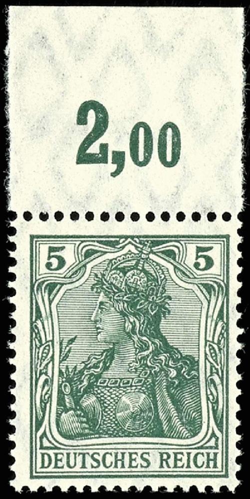 | Zusatzinformationen und Suchstichworte: | Dr. Reinhard Fischer 188. Auktion 1. - 3. September 2022 Los 1925 Deutsches Reich, Germania mit WZ 5 Pfg Germania, Friedensdruck, schwärzlichsmaragdgrün, Plattendruckoberrandstück, tadellos postfrisch, Fotoattest Jäschke-Lantelme BPP: "in fehlerfreier, postfrischer Erhaltung.", Mi. 500.- Ausruf 100,00 EUR |