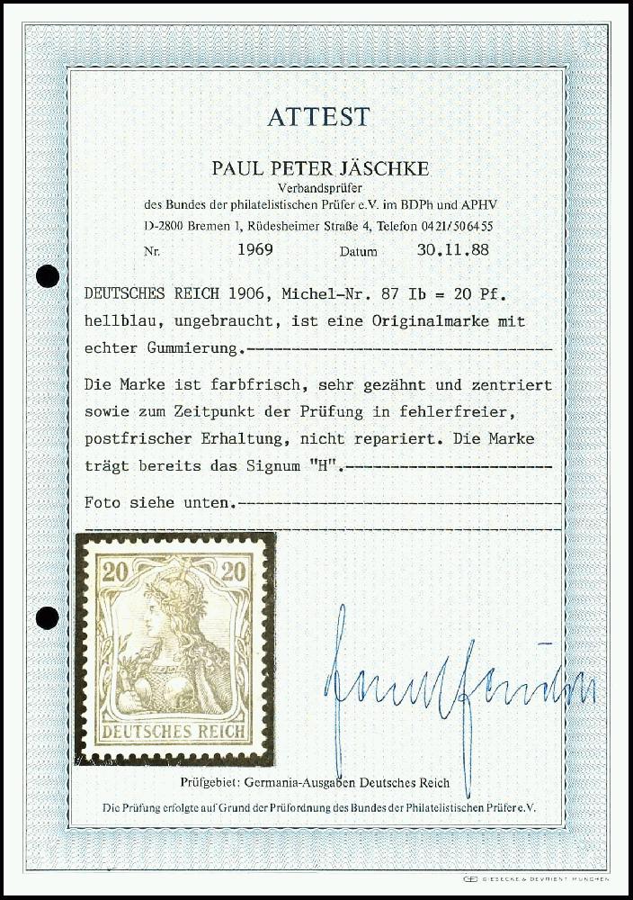 | Prüfgebiet: | Deutsches Reich 1871 - 1918 (Mi-Nr. 1 - 106) |