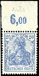 | Zusatzinformationen und Suchstichworte: | Dr. Reinhard Fischer 188. Auktion 1. - 3. September 2022 Los 1937 Deutsches Reich, Germania mit WZ 20 Pfg violettblau, Friedensdruck, Plattendruckoberrandstück (kl. Bleistiftbeschriftung), tadellos postfrisch, Fotoattest Jäschke-Lantelme BPP: "in fehlerfreier, postfrischer Erhaltung.", Mi. 3.000.- Ausruf 600,00 EUR |