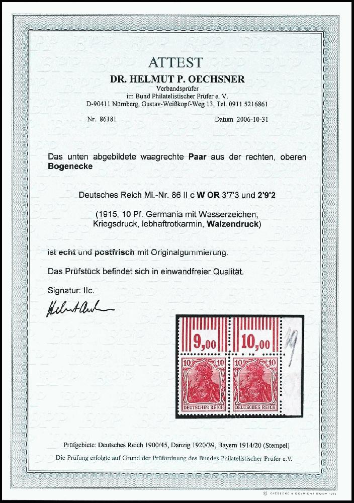 | Prüfer: | Oechsner, Helmut (BPP (Bund Philatelistischer Prüfer)) |