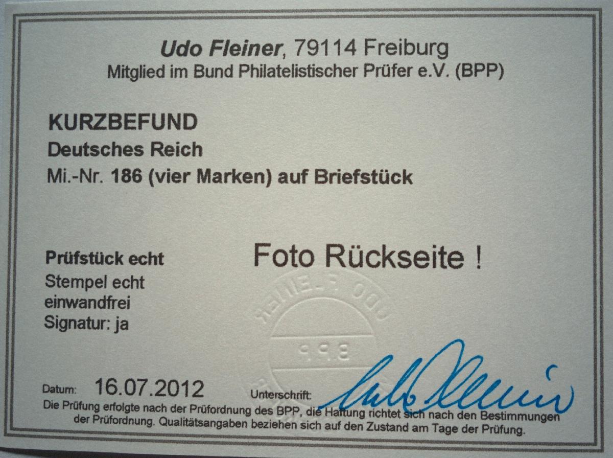 | Prüfer: | Fleiner, Udo (BPP (Bund Philatelistischer Prüfer)) |