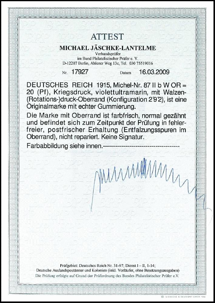 | Prüfer: | Jäschke-Lantelme, Michael (BPP (Bund Philatelistischer Prüfer)) |