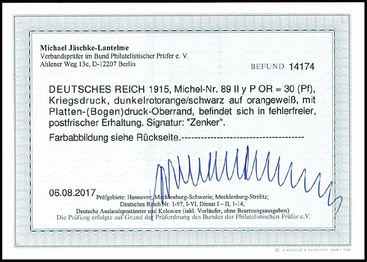 | Prüfer: | Jäschke-Lantelme, Michael (BPP (Bund Philatelistischer Prüfer)) |