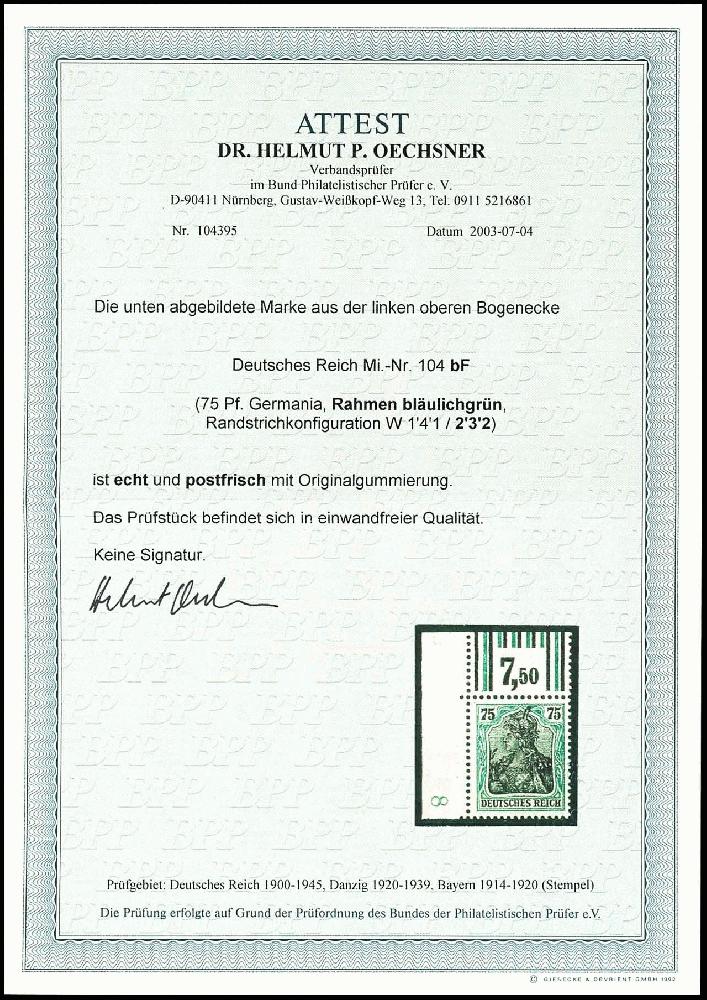 | Prüfgebiet: | Deutsches Reich 1871 - 1918 (Mi-Nr. 1 - 106) |