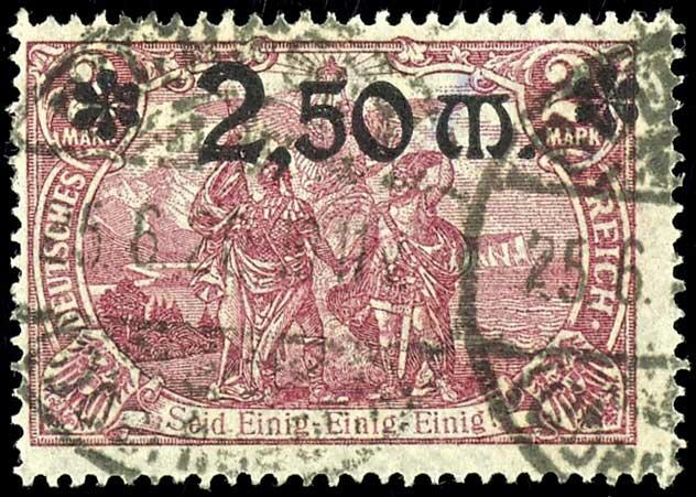 | Zusatzinformationen und Suchstichworte: | Dr. Reinhard Fischer 188. Auktion 1. - 3. September 2022 Los 2034 Deutsches Reich, Germania mit WZ 2,50 M. auf 2 M. rosakarmin, gestempelt, tadellos, Fotobefund Winkler BPP, Mi. 250,- Ausruf 50,00 EUR |