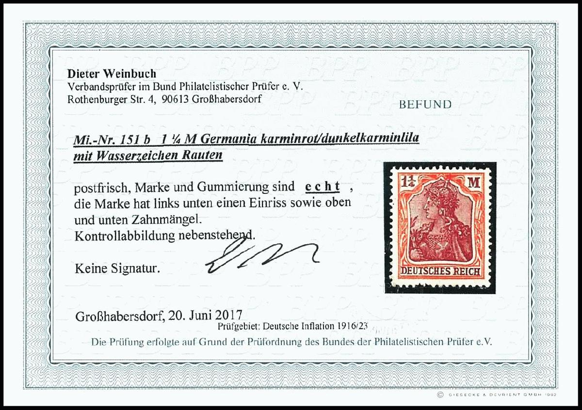 | Prüfer: | Weinbuch, Dieter (BPP (Bund Philatelistischer Prüfer)) |