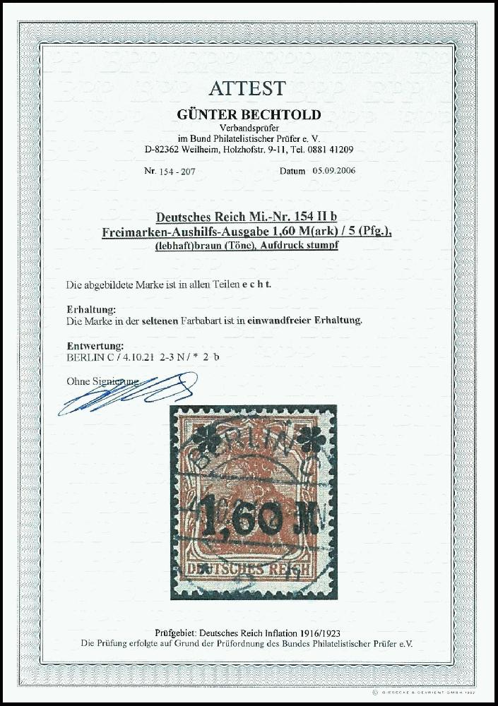 | Prüfgebiet: | Deutsches Reich 1919 - 1923 (Mi-Nr. 107 - 343) |