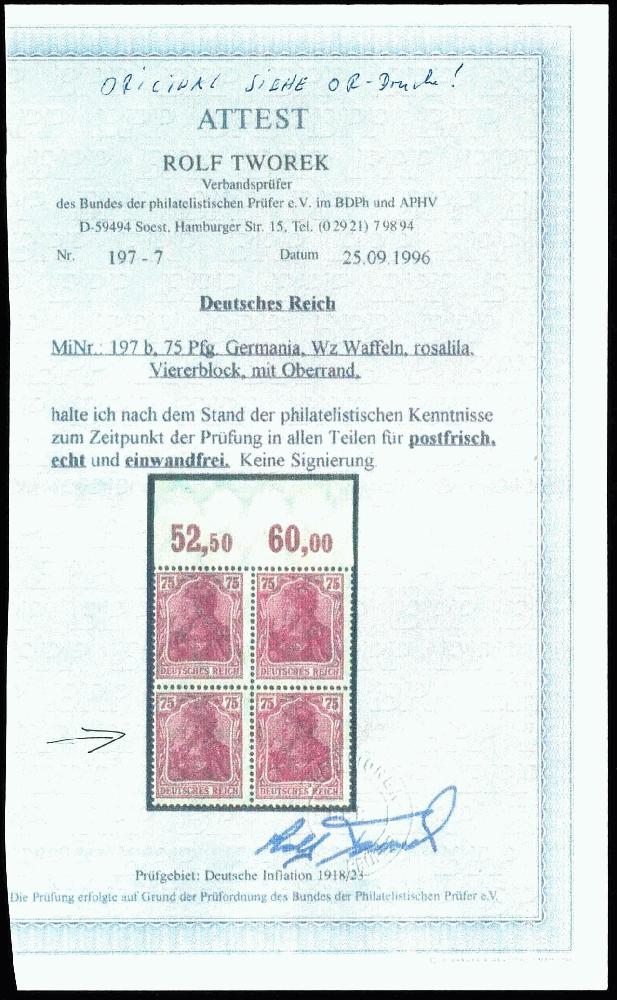 | Prüfer: | Tworek, Rolf (BPP (Bund Philatelistischer Prüfer)) |