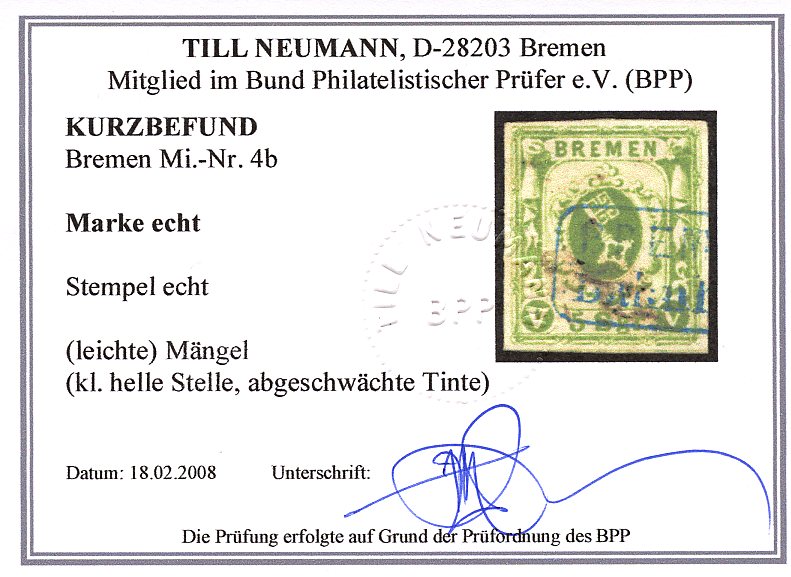 | Prüfer: | Neumann, Till (BPP (Bund Philatelistischer Prüfer)) |