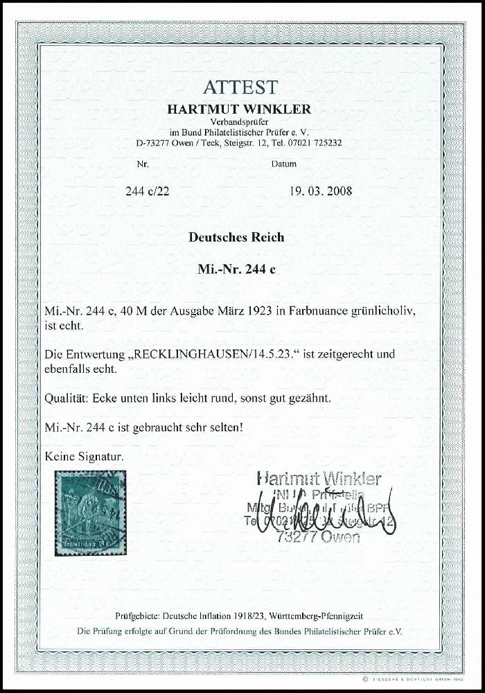 | Prüfgebiet: | Deutsches Reich 1919 - 1923 (Mi-Nr. 107 - 343) |