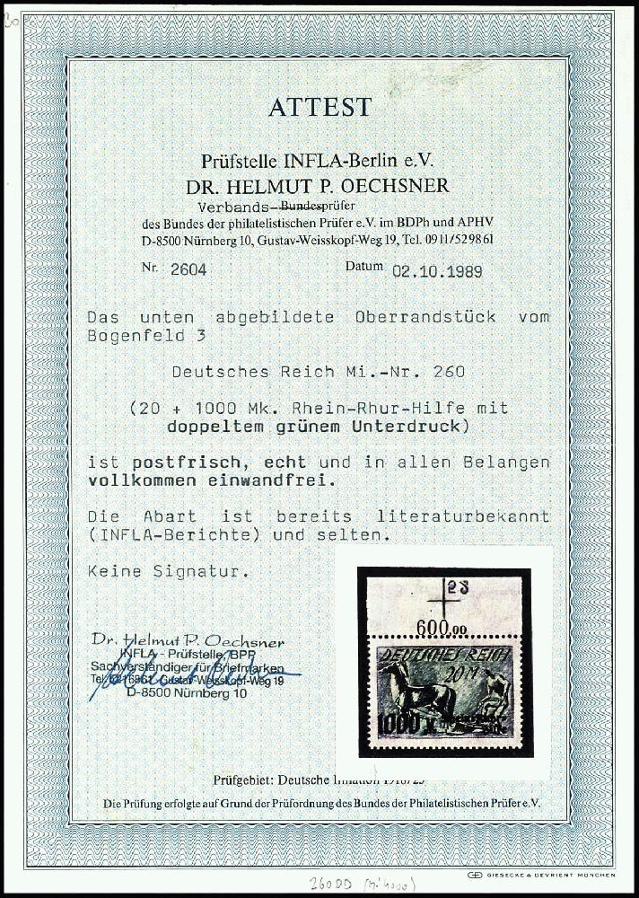 | Prüfer: | Oechsner, Helmut (BPP (Bund Philatelistischer Prüfer)) |
