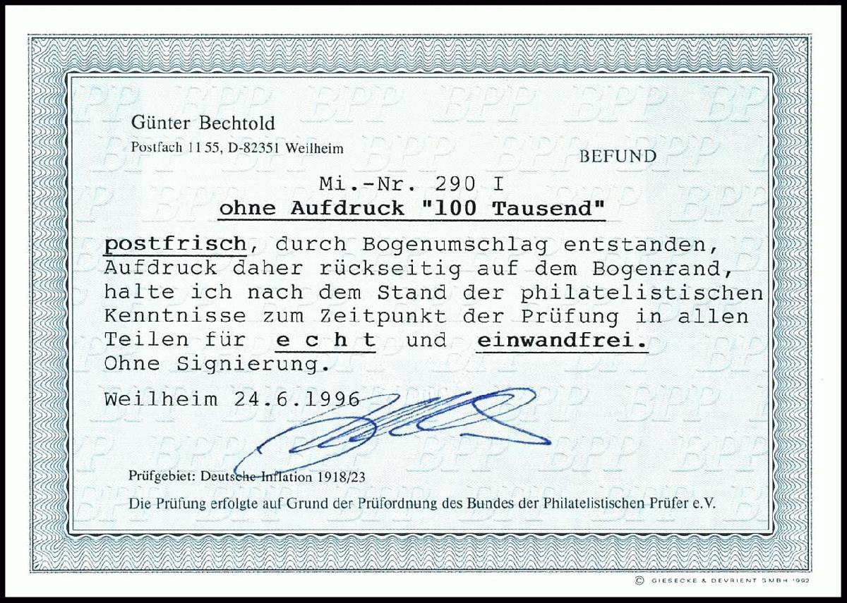 | Prüfgebiet: | Deutsches Reich 1919 - 1923 (Mi-Nr. 107 - 343) |