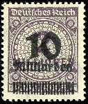 | Prüfgebiet: | Deutsches Reich 1919 - 1923 (Mi-Nr. 107 - 343) |