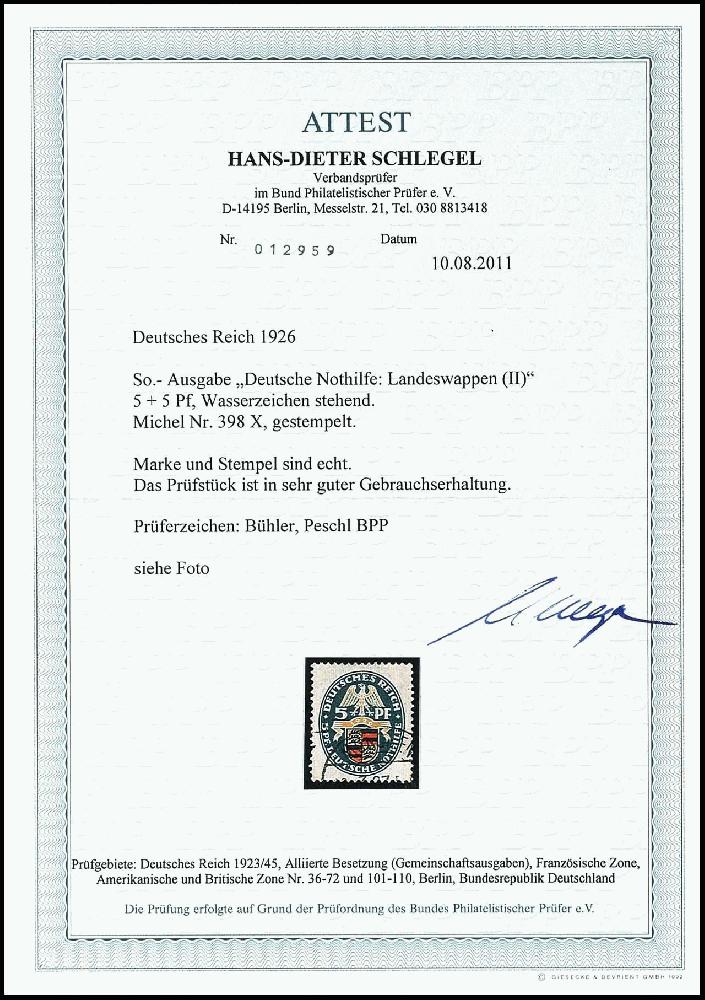 | Prüfgebiet: | Deutsches Reich 1924 - 1932 (Mi-Nr. 344 - 478) |