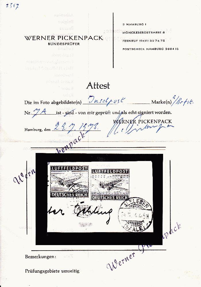 | Zusatzinformationen und Suchstichworte: | Inselpost Kreta in Mischfrankatur mit normaler Luftfeldpostzulassungsmarke, weiteres Attest siehe hier: http://www.briefmarken-atteste.de/atteste/zeigen/1035 |