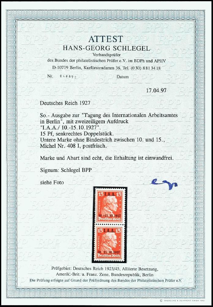 | Prüfer: | Schlegel, Hans-Georg (BPP (Bund Philatelistischer Prüfer)) |