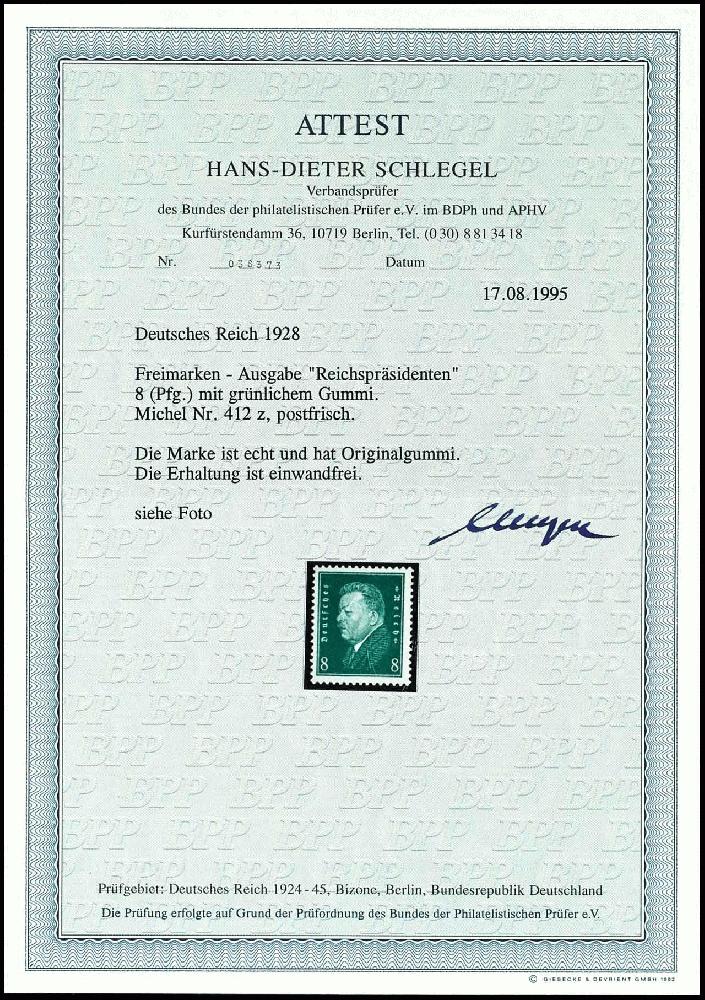 | Prüfer: | Schlegel, Hans-Dieter (BPP (Bund Philatelistischer Prüfer)) |